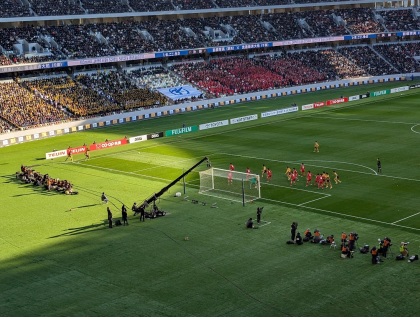 今回は、昨年の記者席と違ってゴール裏の熱い雰囲気の中で観覧。