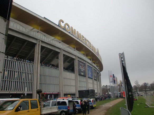 私は一度フランクフルトを旅行したことがあるので線路沿いのスタジアムを見たことがあります。